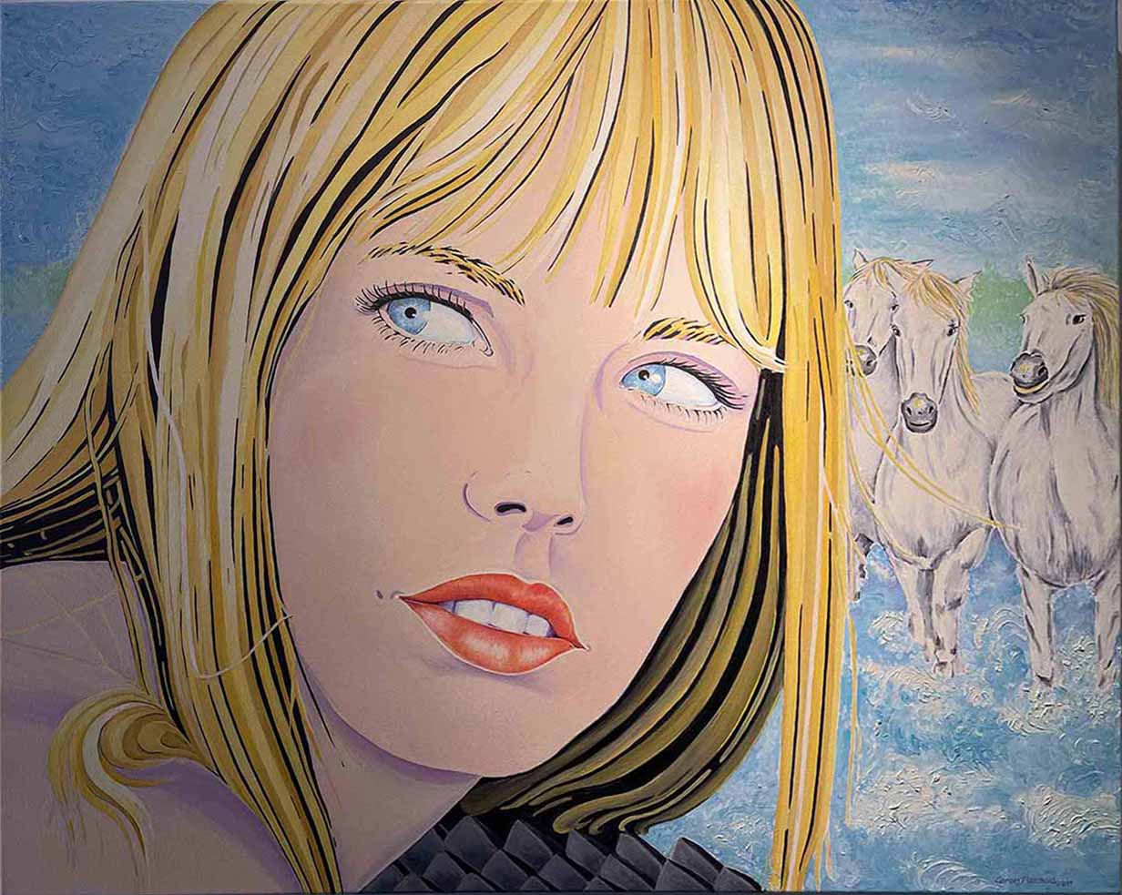 Carola Paschold, "Hommage Jane Birkin" - Öl auf Leinwand, 80 x 100 cm