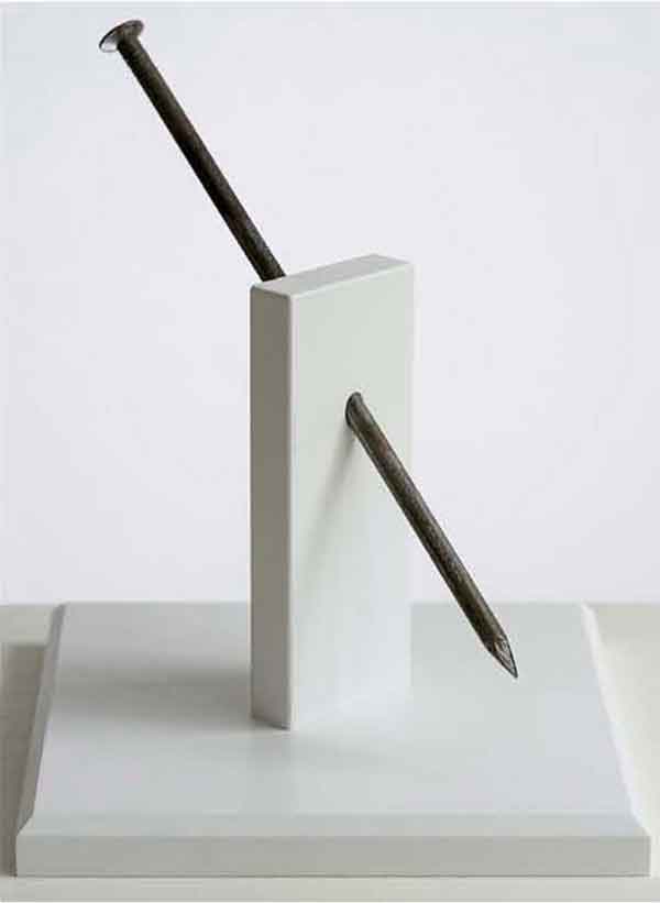 Holz/Nägel/Farbe-Installation - 60 x 42 x 42 cm