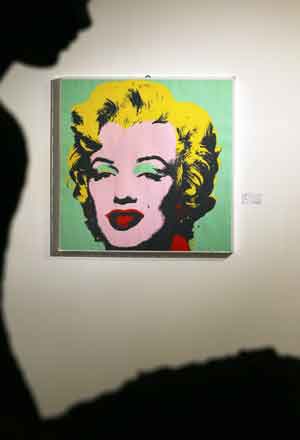 In dieser Manier ist auch seine Serie “Marilyn Monroe” gehalten. Mit auffälligen Farbvariationen und von Hand eingezeichneten Linien differenziert er die einzelnen Darstellungen und schafft mit Hilfe der verschiedenen Farbkombinationen zehn Variationen eines einzigen ikonografischen Themas.