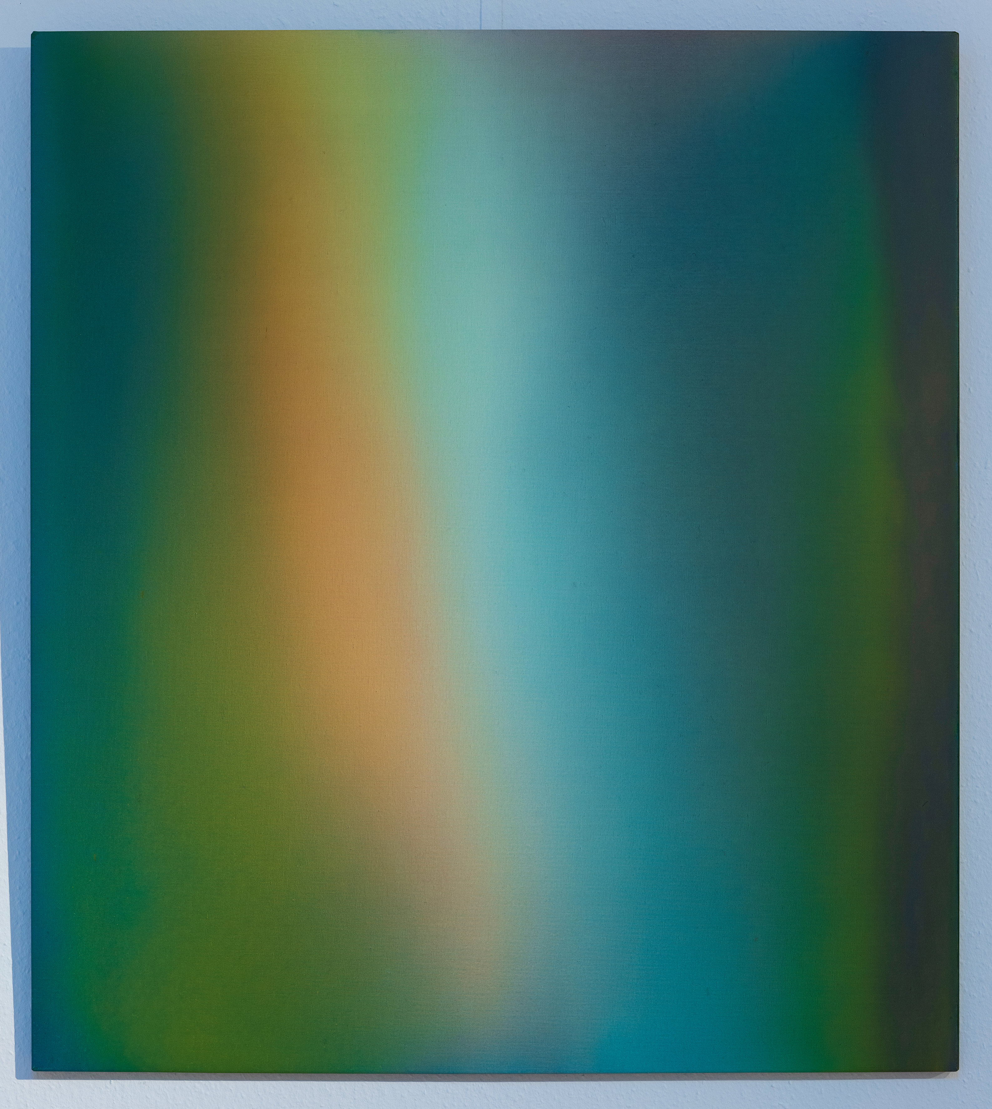 Die Künstlerin inszeniert feinsinnliche Farb- Valeurs und sphärische Licht-Kompositionen. Es ist eine Monochromie, die sich in feinsten Nuancen entfaltet – oft und gerade hin zum Licht: „Ich suche während des Malens ein Lichtzentrum, eine Form.“ Sie tastet sich gleichsam an dieses Zentrum heran, es ist ein Prozess im Fluss, gedanklich, meditativ, aber natürlich auch intensiv handwerklich auf der Leinwand. Sie sagt: „Für mich ist diese Fläche nicht formlos, sondern gestaltet, das Licht ist die zentrale Form.“ Es ist das Licht, das innere Räume und zugleich kosmische Weiten öffnet.