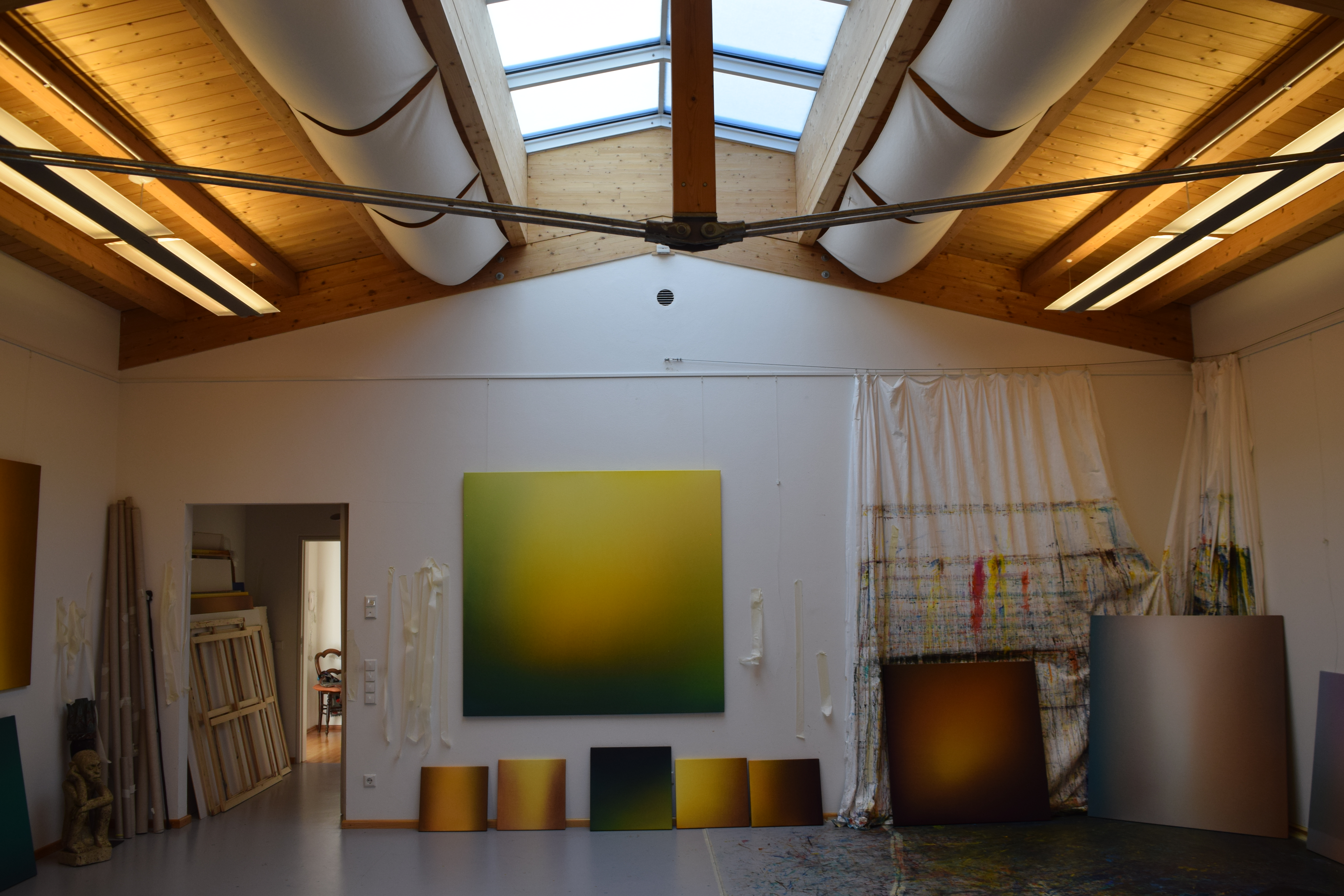 Hedwig Katzenberger was born in Krefeld in 1936 and comes from the well-known Krefeld industrialists family Küsters ("I am one of the five daughters of Eduard and Mechtilde Küsters"). Hedwig Katzenberger has lived and worked in Upper Bavaria for decades. Her large studio offers plenty of free space for inspiration - and her mostly large-format paintings. Initially, Hedwig Katzenberger worked as a freelance psychologist - and then found her way to art almost 50 years ago: "My subjects of study were psychology, philosophy and comparative religion, they have a great influence on the essence of my painting."