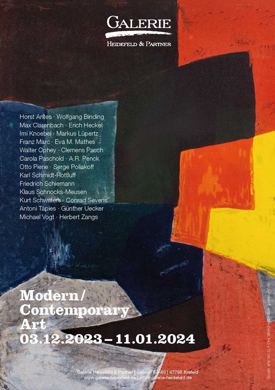 Horst Antes · Wolfgang Binding · Max Clarenbach · Erich Heckel · Imi Knoebel · Giuseppe Lamers · Markus Lüpertz · Franz Marc · Eva M. Mathes · Walter Ophey · Clemens Pasch · Carola Paschold · A. R. Penck · Otto Piene · Serge Poliakoff · Friedrich Schiemann · Karl Schmidt-Rottluff · Klaus Schnocks-Meusen · Kurt Schwitters · Conrad Sevens · Antoni Tàpies · Günther Uecker · Michael Vogt · Herbert Zangs