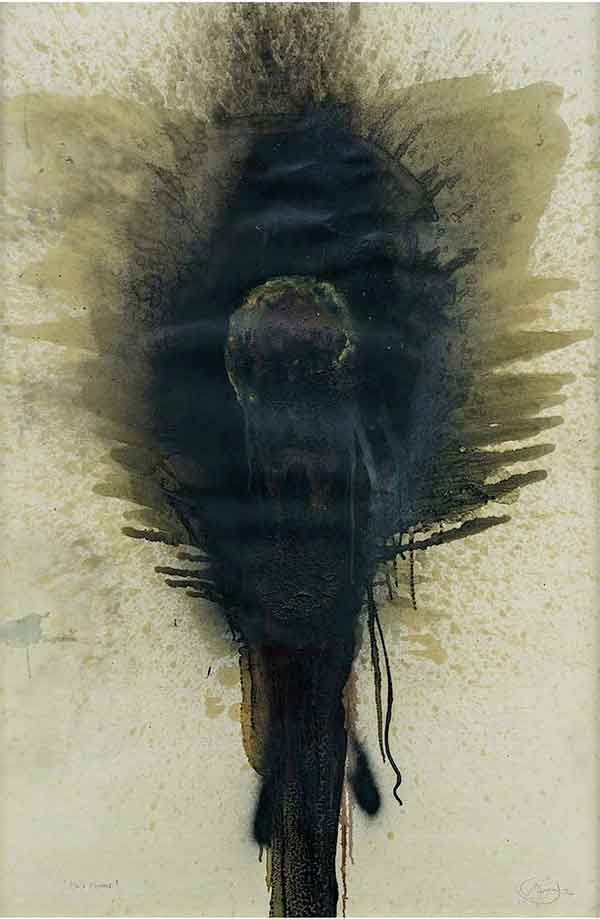 Feuer-Gouache/Ruß/Lack auf Karton - 95 x 68 cm
