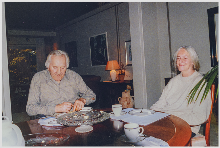 Kunstgespräch am Kaffeetisch. Herbert Zangs und seine Lebensgefährtin Josefine Ochs privat zu Gast beim Galeristen Egon Heidefeld. Es waren immer anregende Unterhaltungen.