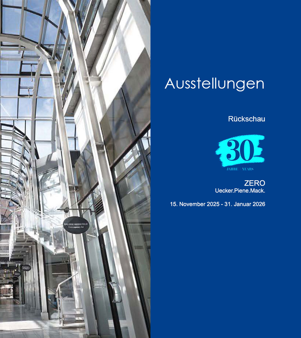 Galerist Egon Heidefeld: „In Verbindung mit unserer ZERO-Ausstellung zeigen wir auch ausgewählte Arbeiten von drei Künstlern der Galerie: Herbert Zangs mit ausgewählten frühen Arbeiten, Fotokunst von Werner Pillig und Malerei von Serge Bizyuk.“